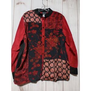 Koos Of Course Shirt Ladies Large Red Button Front Long Sleeve Silk Light Weight