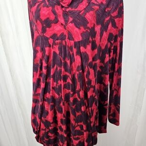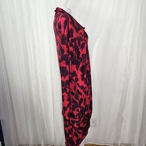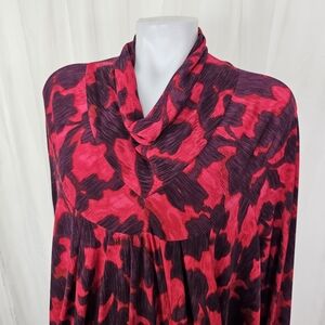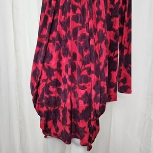 Koos Red Plum Abstract Patterned Long Sleeve Dress Unique Drape Fit Medium