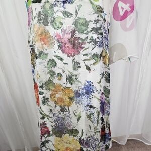 Koos White and Bright Bird Unique Floral Abstract Multicolor Dress Medium