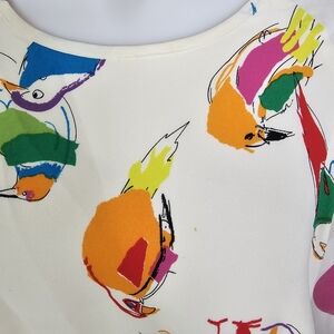 Vintage Koos Van Den Akker White and Bright Multicolor Multipattern Mixed Media Unique Dress
