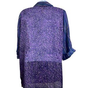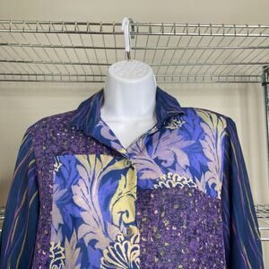 Koos of Course Floral Patwork Tunic Button Up Shirt Purple 3/4 Sleeve
