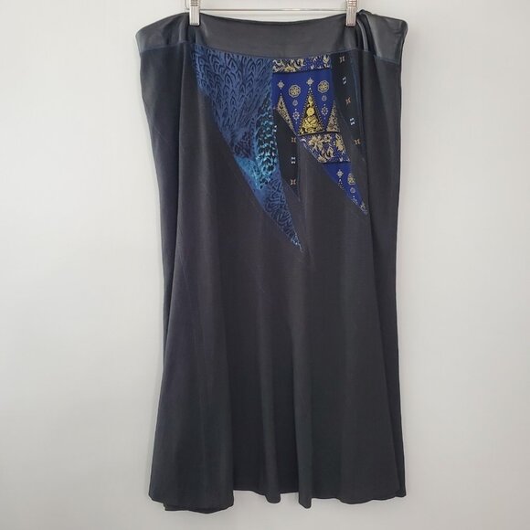 Koos of Course Mixed Media Leather Trim A Line Skirt Size 22W Boho Art To Wear