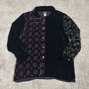 Koos of Course Shirt Womens Small Button Up Blouse Velvet Floral Whimsygoth Silk