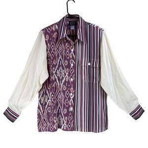 Koos of Course Womens 100% Silk Art to Wear Button Front Mixed Print Blouse Sz M