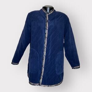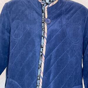Koos of Course Womens Quilted Reversible Coat sz L Vegan Heavyweight Jacket Blue