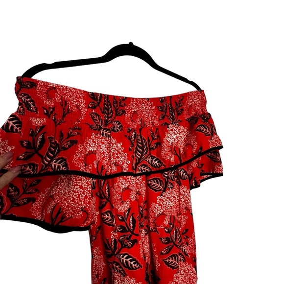 Kopal Ruffle Red/Black/White Biji Off-Shoulder Floral Patterned Jumpsuit Sz MP