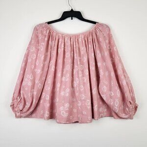Kopal Size M Boho Floral Puff Sleeves Flowy Relaxed Fit Women's Top Blouse