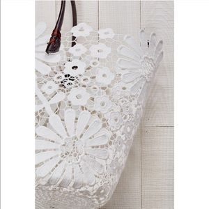 Fabulous white crochet daisy lace woven tote bag. A perfect addition to your summer wardrobe. Such a versatile piece. Carry it to the beach, carry it to the gym, great as a catch all tote for running errrands too. Go girly and wear it on date night.
