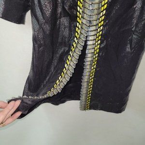 New condition. Designer piece from Fall 2015. Absolute statement piece!! Lightweight lame' material has sparkle and barrel beads reflect light. Zipper is very hard to use due to the barrel beads. Once unzipped it is still a great layering piece, but extremely hard to start the zipper. No size listed in garment (XS-S) - please see measurements as getting in and out is very hard if not unzipped.
