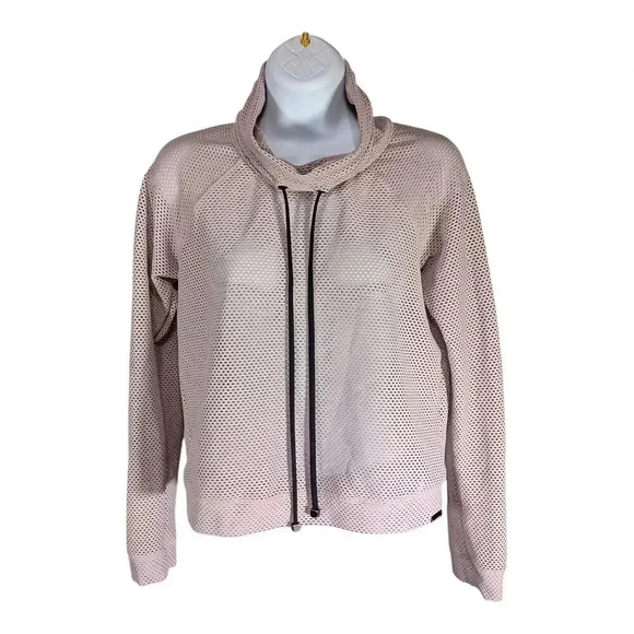 Koral Cropped Top Long Sleeve Textured Pullover Mock Neck Beige Tan Medium