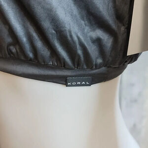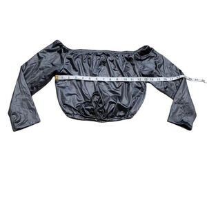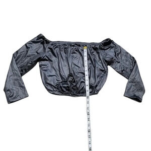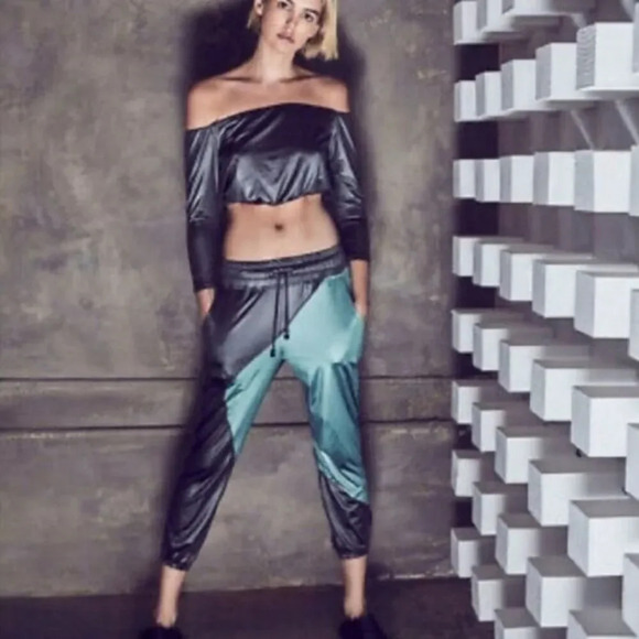 Koral Shimmer Off Shouder Crop Top with drawstring. This top is double layered and super soft to the touch. Its a sample and care and size tag has been cut
