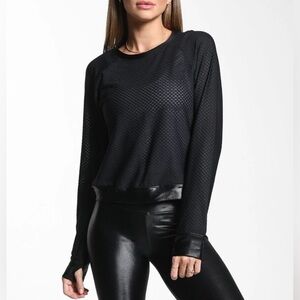 The Sofia Netz Pullover is made from our ultra-breathable Netz fabric and features a relaxed fit with thumbhole details. Its beautiful textured look, lightweight feel, and cooling properties make it perfect for intense workouts.