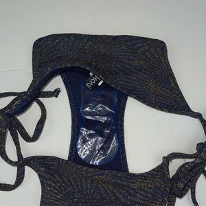 NEW Koral Swim String Bikini Bottoms Navy Blue Gold Sparkle