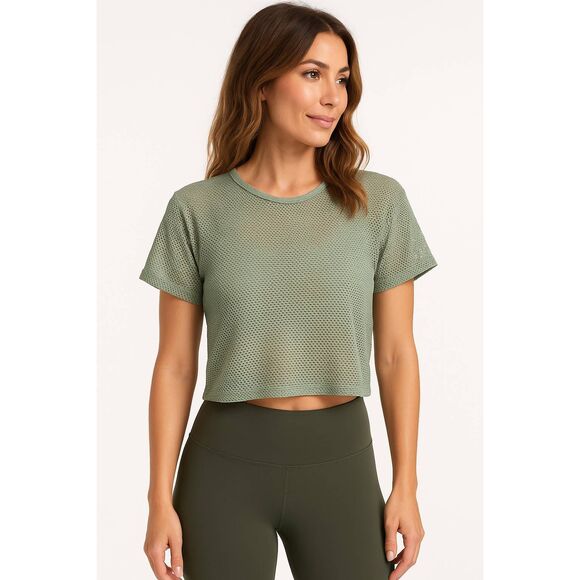 Koral Terrain Open Mesh Crop Top Small NWT • Green Sage Breathable Active Tee
