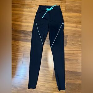Koral Valencia women’s high-rise leggings, excellent condition, black with turquoise/aqua piping and tie in the front description in the photos, size X Small