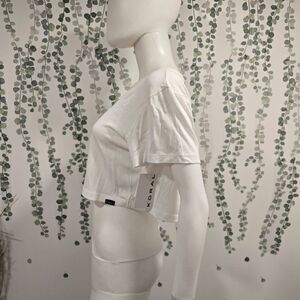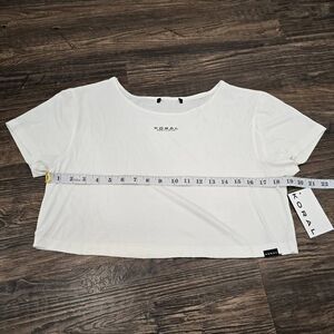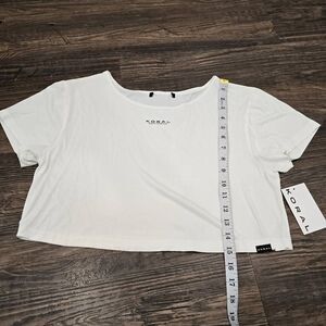Koral White Cropped Tee Small Logo Boxy Fit Soft Stretch Cut Tag NWT