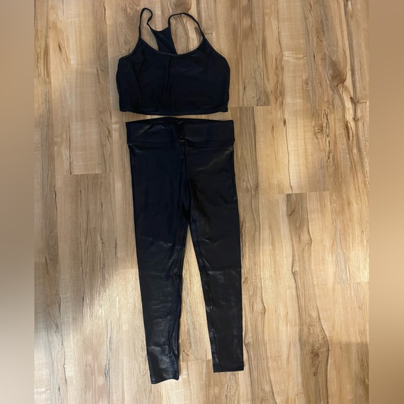 Chic black top with matching leggings. Perfect for workouts or casual wear.