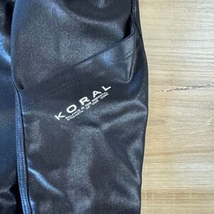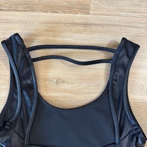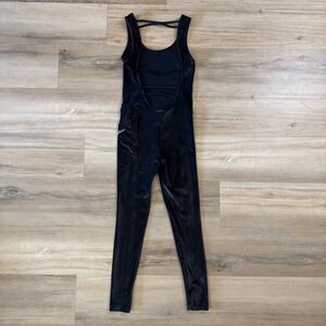 Koral Women's Size S Jet Jumpsuit Fitted Metallic Black Catsuit Open Back Yoga