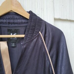 Koral Womens XS Navy Satin Bomber Jacket Zip Up Athletic Track Style