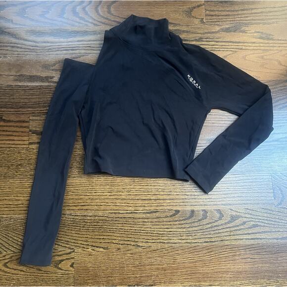 Koral high neck long sleeve crop top Sz. S black cut out detail logo front NWOT