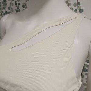 Koral One Shoulder Ribbed Off White Crop Top Sz S