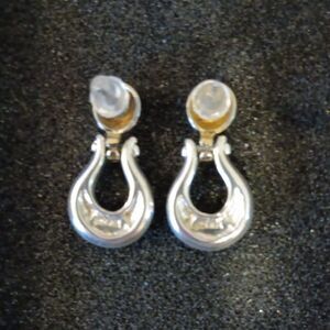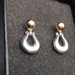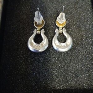 These elegant two-tone earrings feature a stunning combination of silver and gold, perfect for any occasion. Add a touch of sophistication to your look with these beautifully crafted pieces. They Measure a little under 1 inch. Excellent Pre-Owned Condition. Non Magnetic. Marked Korea