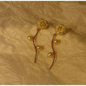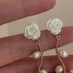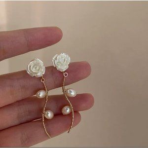 Korean Earrings Elegant Imitation Pearl Earrings For Women White Rose Cute Earri