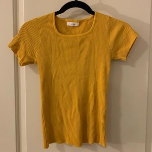 ribbed, mustard color t-shirt from korea! it's fitted so it's really flattering. never worn. one size but would fit size S