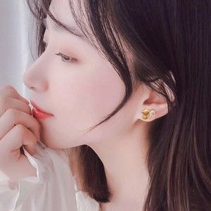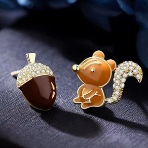 Korean Squirrel Acorn Stud Earrings Enamel Pave Goldtone 925 SIlver Posts 001A2