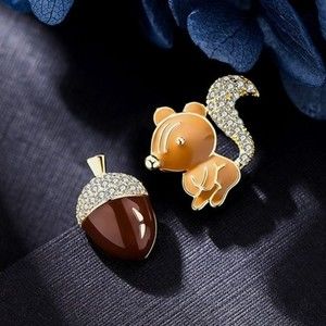 Squirrel Acorn Stud Earrings Enamel Pave Goldtone