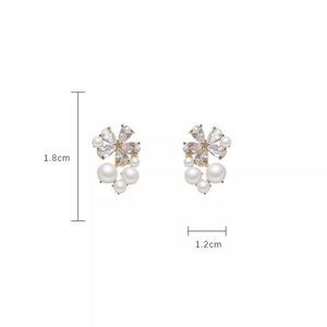 Korean Style Crystal Flower Imitation Pearl Stud Earrings For Women Girls Sweet Statement Flower Earring Party Jewelry #337