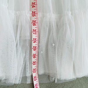 Korean Style Fashion White Mesh Skirt with Pearls details.
