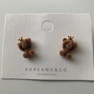 Koreana & Co. Teddy Bear With Crown Earrings - 925 Silver