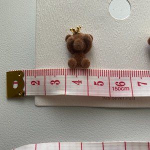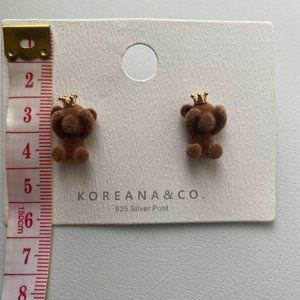 Koreana & Co. Made in Korea. Furry Teddy Bear with crown earrings, 925 silver.