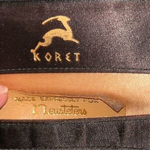 The Koret 90 YEAR OLD Black and Gold Clutch is a stunning accessory that combines timeless elegance with modern sophistication. Crafted with a sleek, structured design, this clutch features a luxurious black fabric complemented by a gold-toned clasp, making it a perfect choice for formal occasions. Its minimalist style ensures versatility, allowing it to seamlessly enhance any ensemble. Coin pouch on delicate gold chain.