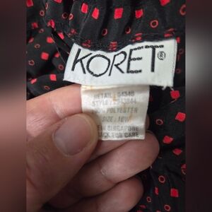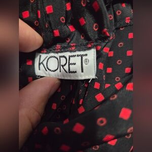 Elegant maxi skirt by Koret. Features a black base with red dot pattern. Ideal for versatile styling.