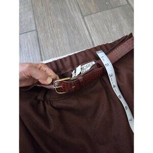 The Koret Career Wool Pleated Midi A-Line Skirt Vintage in size 12 is a classic and stylish piece perfect for any retro-inspired wardrobe. Made of wool with a solid brown color, this skirt features pleated accents that add a touch of charm to its A-line silhouette. With a zip closure and lined interior, this skirt is both practical and comfortable for all-day wear. Perfect for the fall, winter, and spring seasons, this vintage gem is still with its original tag, making it a rare find for any fashion enthusiast.