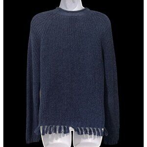 Koret City Blues Women's Embroidered Patches Floral Sweater Size M Blue Knit Pullover Fringe Hem
