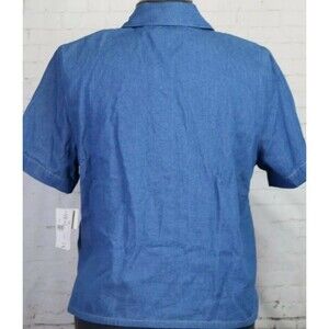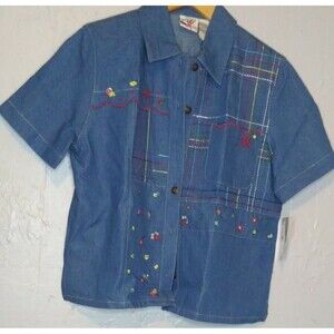 Koret City Blues women's PM blouse indigo Tic Tac Toe scallops & florals. Condition is "New with defects".