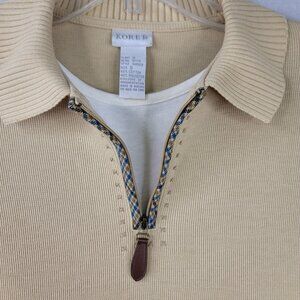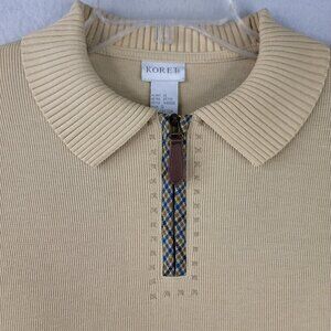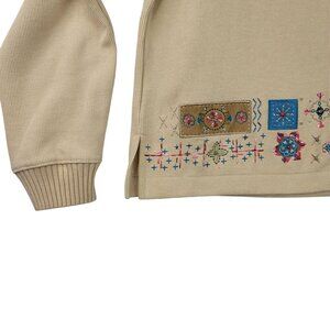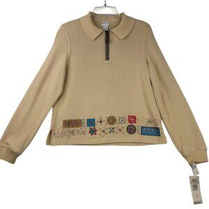 Koret Embroidered Beige Long Sleeve Top Size S With Shoulder Pads New Grannycore