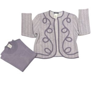 Koret Light Purple 2 Piece Dress and Jacket Outfit Like New Size M Tall. Dress had crew neck. Top/Over jacket has dark purple embroidered design in the front and hem.