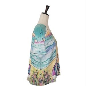 Koret Multi Color Beach Palm Tree Print Pullover Short Sleeve Top