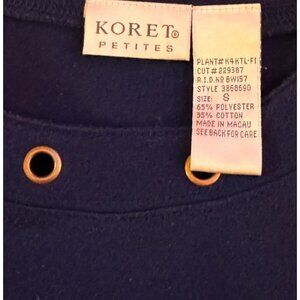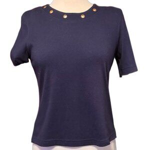 Koret Navy Blue Short Sleeve Knit Top / Sweater Gold Grommets Comfortable Small