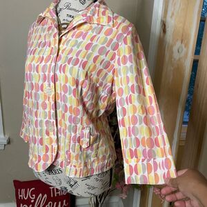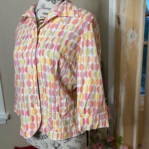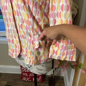 Koret Petit button down women's shirt with 3/4 sleeves and circle pattern design