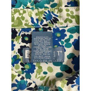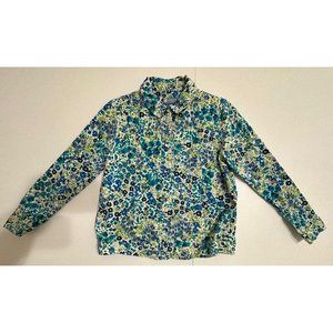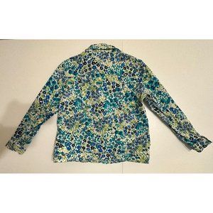 Koret Petite Green Blue Floral Button Up Jacket Lightweight Sequins Pockets PS