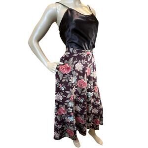 Koret Petites Vintage 80s A-Line Midi Skirt with Side Pockets Women’s Size 6P Autumn Fall Floral Tapestry Boho Hippie Cottage Core EUC