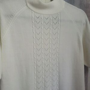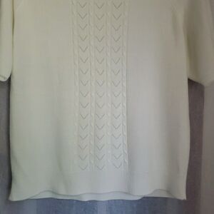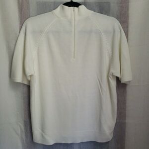 Koret Short Sleeve Sweater Ivory White Back Zipper Preppy Academia Size M