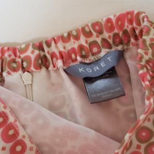 Koret Full Skirt Size 14 in colors, cream, coral and olive green, and Co-ordinating NYCC Blouse Size 10 ( Blouse size runs large) in coral.