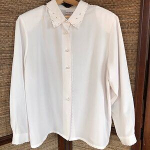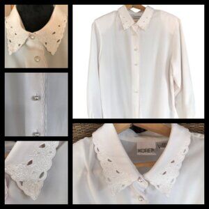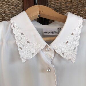 Koret Vintage 80s Cream Blouse: Size 16, Scalloped Eyelet Embroidery Detail