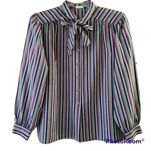 Koret Vintage Exaggerated Sleeve Stripe Button Down Bow Tie Blouse